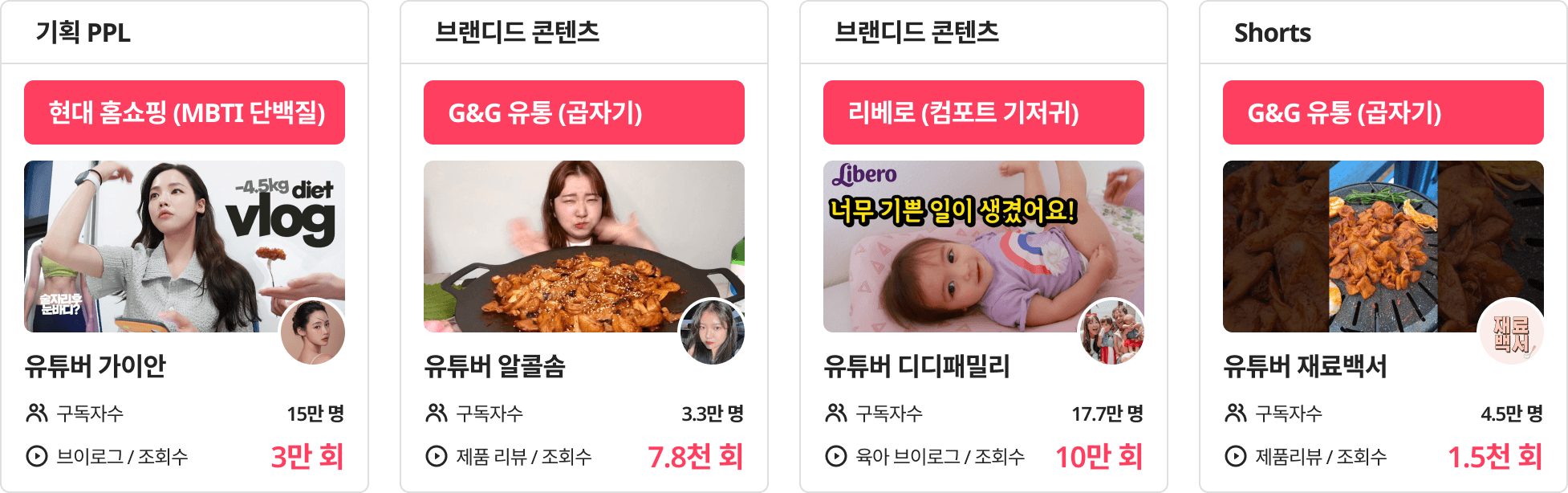 다양한 파트너사와 함께하는 8만명의 유튜버로 효율적인 과정을 거쳐 빠르게 진행이 가능합니다.